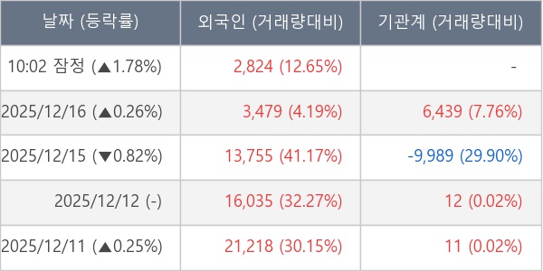 [표] 외국인ㆍ기관 순매매량 (단위 주)
