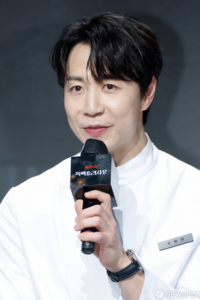 [서울=뉴스핌] 류기찬 기자 = 손종원 셰프가 17일 오전 서울 종로구 JW 메리어트 동대문 스퀘어 서울에서 열린 넷플릭스 예능 ‘흑백요리사: 요리 계급전쟁2’ 기자간담회에서 인사말을 하고 있다. '흑백요리사2'는 오직 맛으로 계급을 뒤집으려는 재야의 고수 '흑수저' 셰프들과 이를 지키려는 대한민국 최고 수준의 스타 셰프 '백수저'들이 펼치는 요리 서바이벌 예능이다. 2025.12.17 ryuchan0925@newspim.com