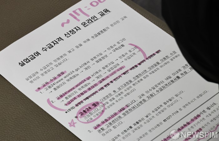 [서울=뉴스핌] 양윤모 기자 = 고용노동부가 2026년 구직(실업)급여 상한액을 6만8천100원으로 인상을 예고한 가운데, 17일 마포구 서울서부고용복지플러스센터를 찾은 구직자가 실업급여를 위한 안내서를 확인하고 있다. 내년 상한액이 조정된 건 지난 2019년 7월 이후 6년 만으로 최저임금이 1만320원으로 올라 이와 연동된 구직급여 하한액도 6만6천48원으로 인상됐다. 2025.12.17 yym58@newspim.com