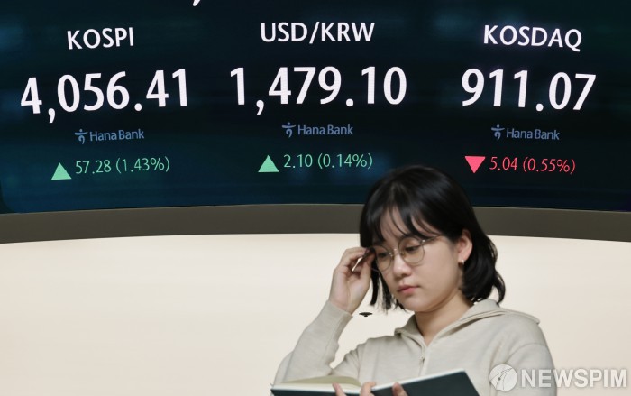 [서울=뉴스핌] 양윤모 기자 = 17일 오후 코스피가 전장 종가보다 57.28 포인트(1.43%) 상승하며 4056.41로, 코스닥은 5.04 포인트(0.55%) 하락한 911.07로 장을 마감한 가운데, 서울 중구 하나은행 딜링룸에서 직원들이 업무를 보고 있다. 서울외환시장에서 달러/원 환율은 전장 대비 2.10원 상승한 1479.10원에 주간거래를 마감했다. 2025.12.17 yym58@newspim.com