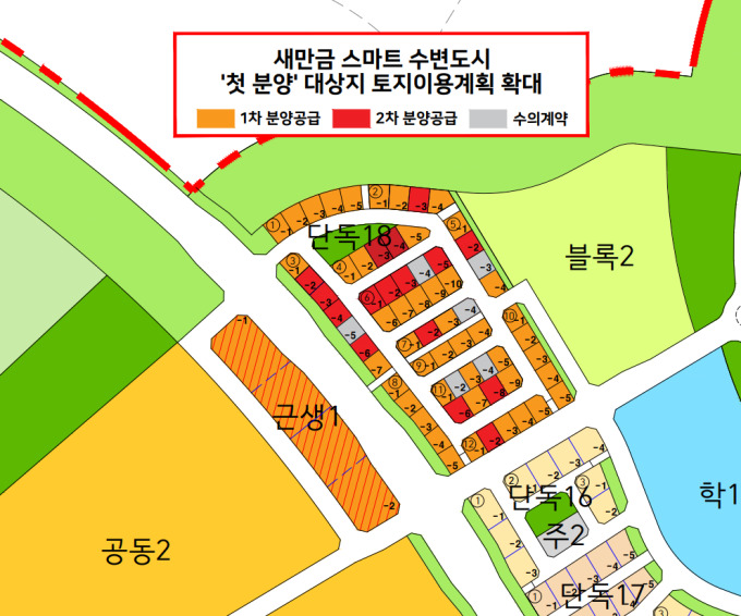 새만금개발공사는 새만금 스마트 수변도시의 2차 분양 결과, 1차 공고 당시 유찰됐던 단독주택용지 22개 필지 가운데 16개 필지(면적 4974㎡)가 낙찰됐다고 17일 밝혔다. 해당 필지들은 추첨 방식으로 공급됐다.