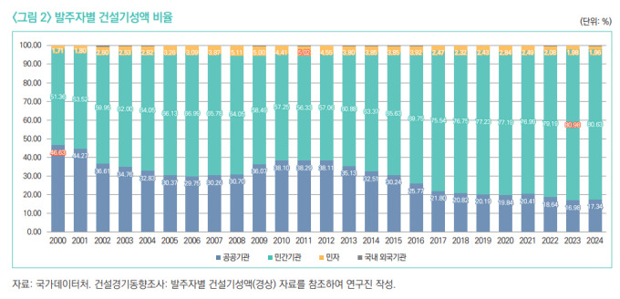 최근에는 사업성이 급격히 악화하며 민간투자 비중이 줄어드는 흐름이 뚜렷하다. 미·중 갈등, 러시아·우크라이나 전쟁, 신종 코로나바이러스 감염증(코로나19) 등 예측 불가능한 변수가 작용하며 건설공사비 지수가 2020년 대비 2025년에 31.17포인트(p) 상승했다. 기준금리도 2022년 대비 2.5%포인트 올랐다. 고물가·고금리·공사비 급등이 겹치면서 민간투자사업 추진 여건은 크게 어려워진 상황이다.