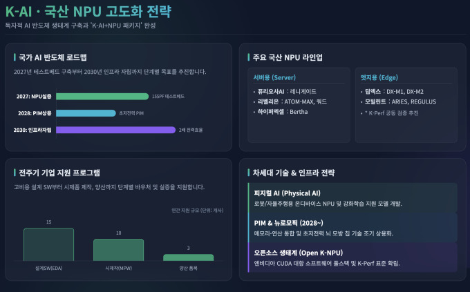 이번 전략의 핵심은 독자 AI 파운데이션 모델을 견고히 지원하는 국산 NPU 성능 확보를 통한 'K-AI+NPU 패키지' 완성이다. 정부는 이를 위해 'K-NPU 프로젝트'를 본격 가동한다.