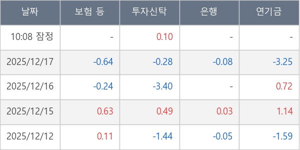 [표] 주요 기관별 순매매량 (단위 만주)