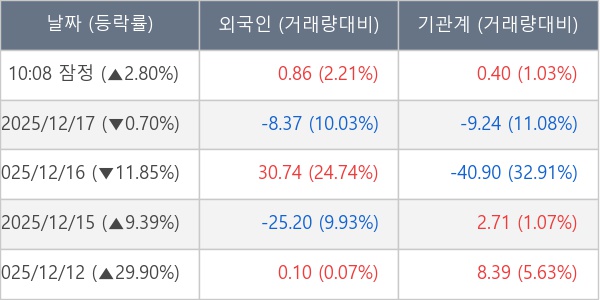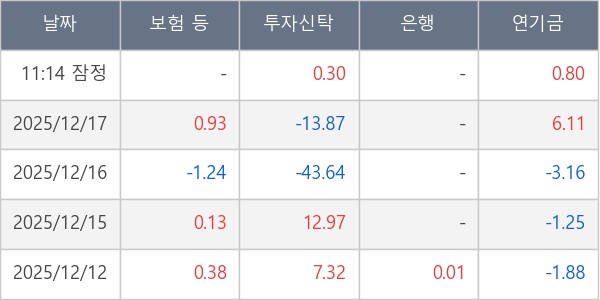 [표] 주요 기관별 순매매량 (단위 만주)
