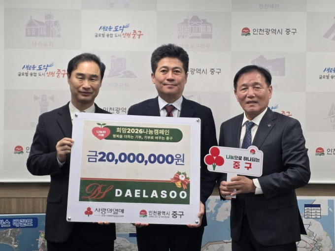 대라수건설, 인천 중구에 성금 전달…연말 나눔 실천