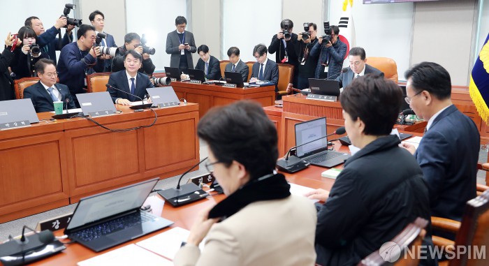 [서울=뉴스핌] 정일구 기자 = 김병기 더불어민주당 원내대표가 18일 오전 서울 여의도 국회 운영위원회 전체회의에서 의사봉을 두드리고 있다. 2025.12.18 mironj19@newspim.com