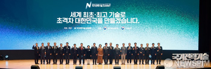 [서울=뉴스핌] 류기찬 기자 = 배경훈 과학기술정보통신부 장관을 비롯한 참석자들이 18일 오전 서울 강남구 코엑스에서 열린 ‘국가전략기술 SUMMIT 2025’에서 기념촬영을 하고 있다. 2025.12.18 ryuchan0925@newspim.com
