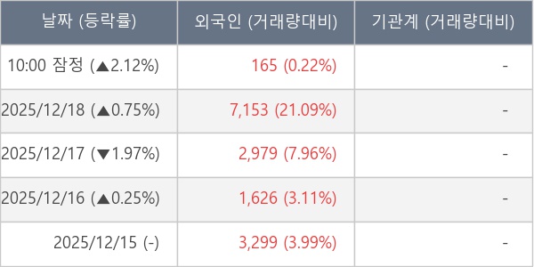 [표] 외국인ㆍ기관 순매매량 (단위 주)