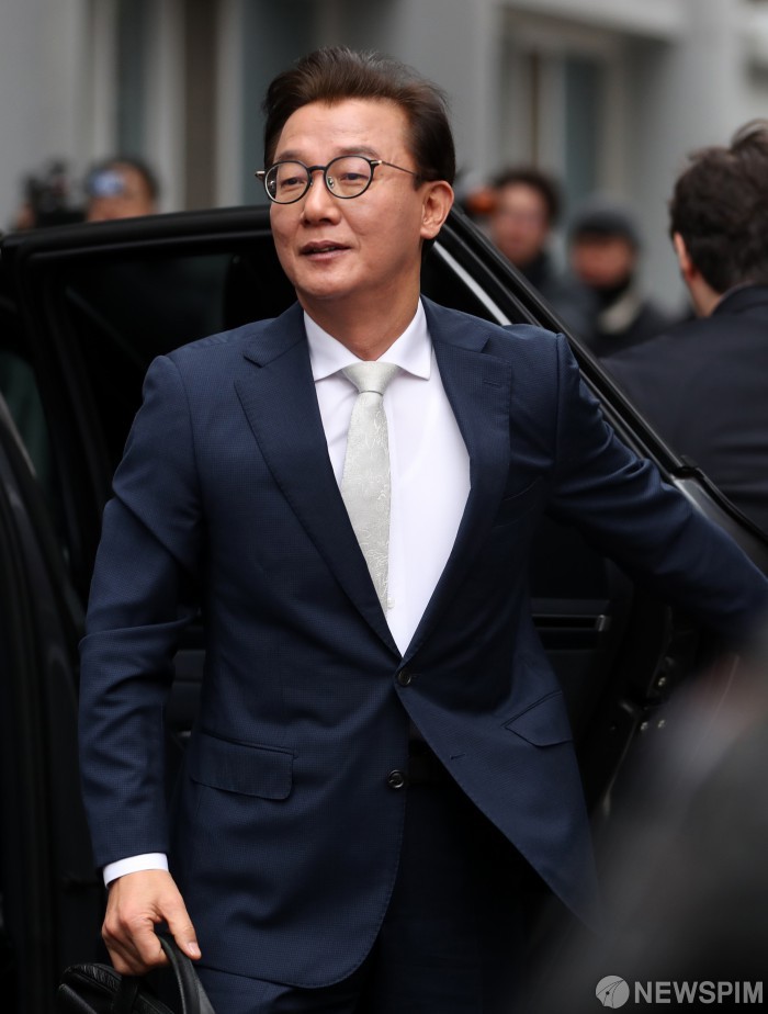 [서울=뉴스핌] 이길동 기자 = 통일교로부터 금품 수수 의혹을 받고 해양수산부 장관직을 내려놓은 전재수 더불어민주당 의원이 19일 오전 서울 서대문구 경찰청에 피의자 신분으로 출석하고 있다. 전 의원은 2018년 무렵 통일교 측으로부터 현금 2000만원과 1000만원 상당의 고가 시계를 수수한 혐의 등을 받고 있다. 2025.12.19 gdlee@newspim.com