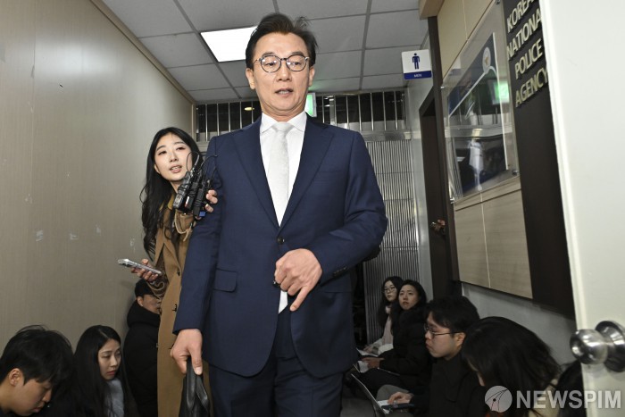 [서울=뉴스핌] 이길동 기자 = 통일교로부터 금품 수수 의혹을 받고 해양수산부 장관직을 내려놓은 전재수 더불어민주당 의원이 19일 오전 서울 서대문구 경찰청에 피의자 신분으로 출석하고 있다. 전 의원은 2018년 무렵 통일교 측으로부터 현금 2000만원과 1000만원 상당의 고가 시계를 수수한 혐의 등을 받고 있다. 2025.12.19 gdlee@newspim.com