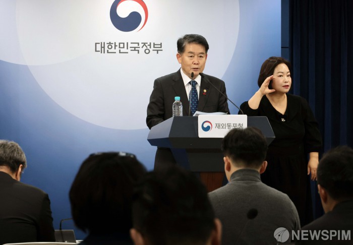 [서울=뉴스핌] 이길동 기자 = 김경협 재외동포청장이 19일 서울 종로구 정부서울청사에서 '2026 주요업무 추진계획' 브리핑을 하고 있다. 2025.12.19 gdlee@newspim.com