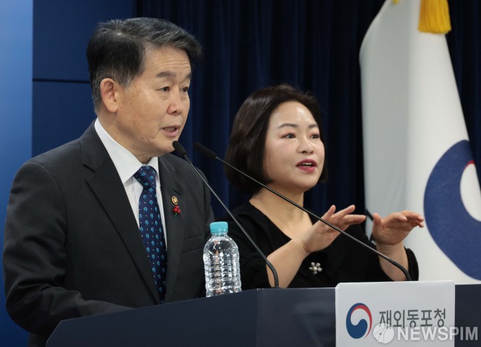[서울=뉴스핌] 이길동 기자 = 김경협 재외동포청장이 19일 서울 종로구 정부서울청사에서 '2026 주요업무 추진계획' 브리핑을 하고 있다. 2025.12.19 gdlee@newspim.com