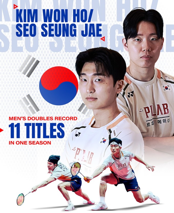 김원호-서승재는 말레이시아오픈, 독일오픈, 전영오픈, 인도네시아오픈, 일본오픈, 세계개인선수권, 중국 마스터스, 코리아오픈, 프랑스오픈, 일본 마스터스에 이어 월드투어 파이널스까지 제패하며 올 시즌 11번째 우승을 기록했다. 여자 단식에서 정상에 오른 안세영(삼성생명), 2019년 모모타 겐토(일본)가 세운 BWF 단일 시즌 최다 우승 기록과 같다.