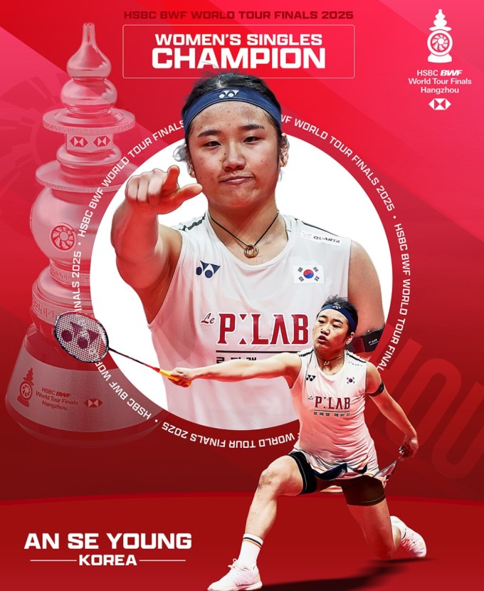 안세영은 21일 중국 항저우 올림픽스포츠센터에서 열린 세계배드민턴연맹(BWF) 월드투어 파이널스 2025 여자 단식 결승에서 왕즈이(중국)를 2-1(21-13 18-21 21-10)로 꺾고 우승했다.