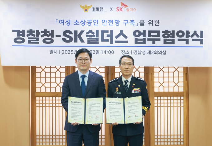 [서울=뉴스핌] 박우진 기자 = 경찰청과 SK쉴더스는 22일 서울 서대문구 경찰청에서 여성 소상공인을 대상으로 한 범죄예방 물품 지원 사업 추진을 위한 업무협약을 맺었다.