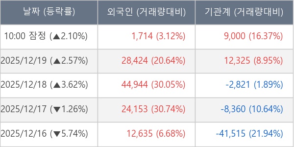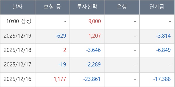 [표] 주요 기관별 순매매량 (단위 주)
