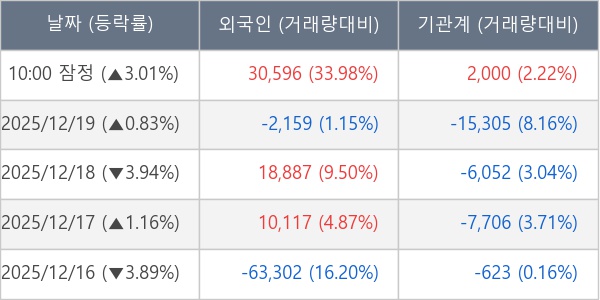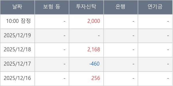 [표] 주요 기관별 순매매량 (단위 주)