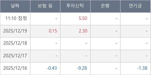 [표] 주요 기관별 순매매량 (단위 만주)