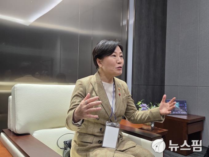 [청주=뉴스핌] 이정아 기자 = 송미령 농림축산식품부 장관은 22일 오송 청주오스코에서 열린 K-농정협의체 성과보고회에서 기자들과 만나 내년 농정 방향에 대해 이야기하고 있다. 2025.12.22 plum@newspim.com