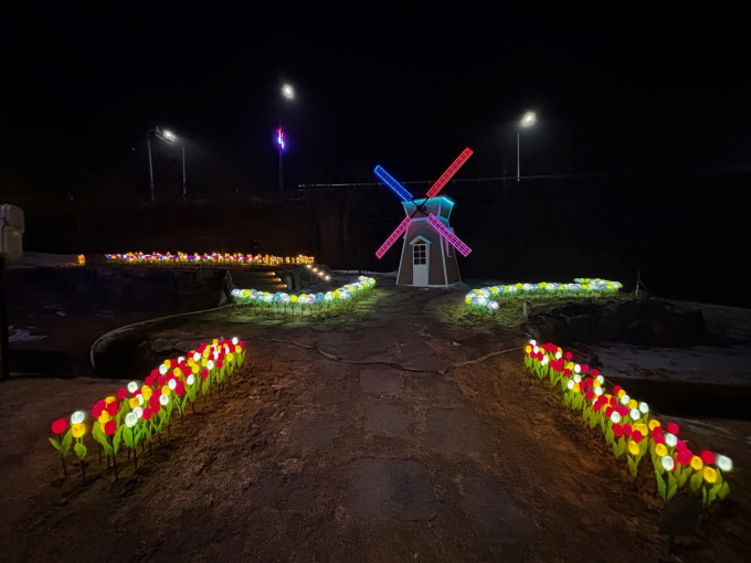 시는 꽃밭 풍차에 조명을 설치하고 화단에는 꽃 모양의 경관조명을 배치해 화사하면서도 따뜻한 야간 경관을 연출했다.