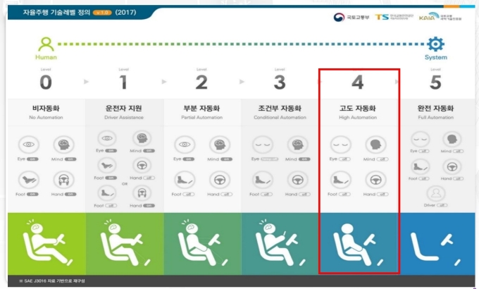 '운전자 보조' 레벨 0~2...'시스템 주도' 레벨 3~5까지