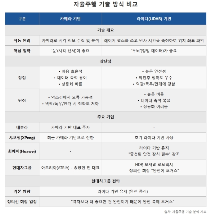 라이다 기반의 자율주행은 비용이 많이 들고 데이터 축적이 어렵다는 단점이 있지만 카메라 기반에 비해 최대 장점은 '안전'이다.