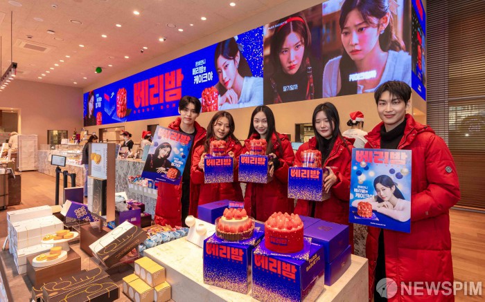 [서울=뉴스핌] 파리바게뜨가 크리스마스를 앞두고 22일 광화문 광장과 청계천 일대에서 홀리데이 케이크 ‘베리밤(BERRY BOMB)’을 주제로 ‘베리밤 런웨이(Runway, 패션쇼의 모델이 걷는 길)’ 행사를 진행했다. [사진=파리바게뜨] 2025.12.22 photo@newspim.com