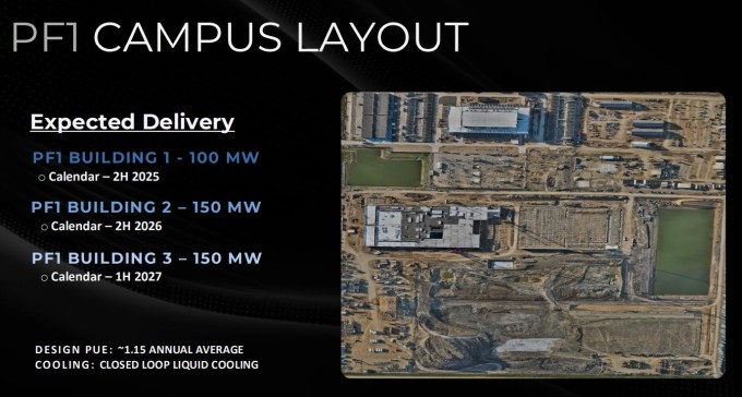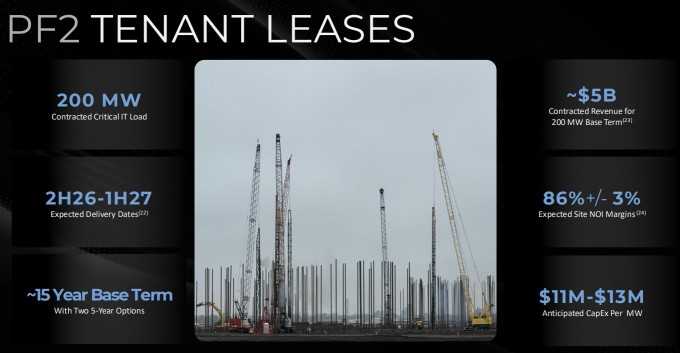 이로써 폴라리스 포지 1의 핵심 IT 부하 용량이 100MW로 완전히 충족되며, 예정대로 제공되었다. 이는 코어위브를 위한 400MW 완전 계약 배포의 일부로, 약 15년간 약 110억 달러의 임대 수익을 창출할 것으로 예상된다.