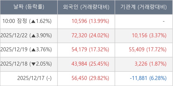 [표] 외국인ㆍ기관 순매매량 (단위 주)