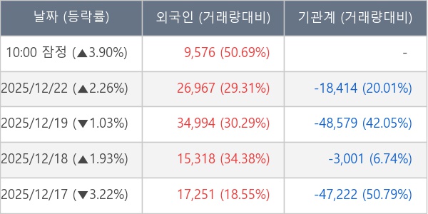 [표] 외국인ㆍ기관 순매매량 (단위 주)