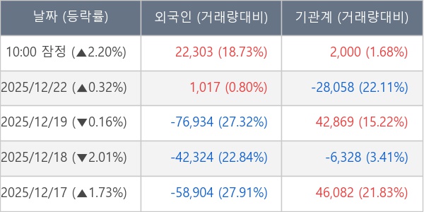 [표] 외국인ㆍ기관 순매매량 (단위 주)