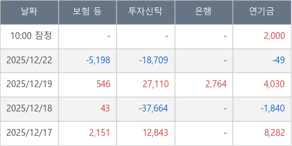 ※ 사모펀드 등 일부 기관의 순매매량은 표시되지 않음
