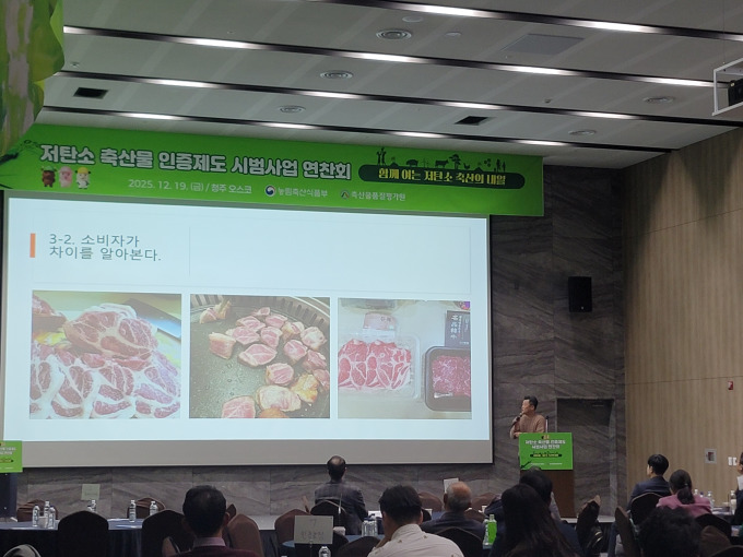 [세종=뉴스핌] 이정아 기자 = 축산물품질평가원은 지난 19일 청주 오스코에서 '저탄소 축산물 인증제도 시범 사업 연찬회'를 개최하고, 지난 3년의 성과를 공유하며 성황리에 마무리했다.