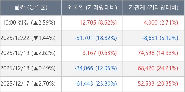 ※ 사모펀드 등 일부 기관의 순매매량은 표시되지 않음