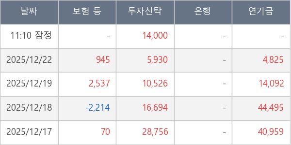 ※ 사모펀드 등 일부 기관의 순매매량은 표시되지 않음