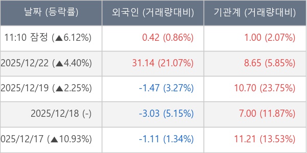 [장중수급포착] 씨엠티엑스, 기관 6일 연속 순매수행진... 주가 +6.12%