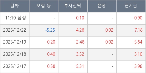[표] 주요 기관별 순매매량 (단위 만주)