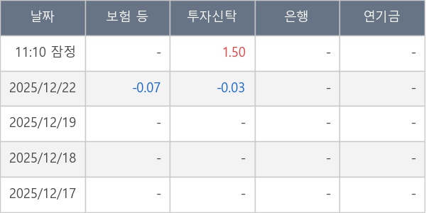 [표] 주요 기관별 순매매량 (단위 만주)