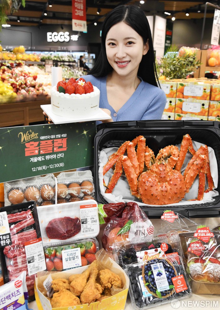 [서울=뉴스핌] 홈플러스가 23일 서울 메가 푸드 마켓 라이브 강서점에서 ‘원터 홈플런’ 마지막 행사 상품을 소개하고 있다. ‘원터 홈플런’에서는 본격적인 크리스마스 시즌과 연말 준비를 위한 홈파티 먹거리를 엄선해 파격가로 제공한다. [사진=홈플러스] 2025.12.23 photo@newspim.com