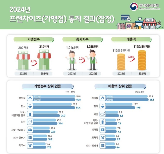 데이터처, 2024년 프랜차이즈 통계 결과 발표