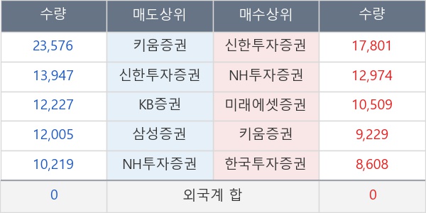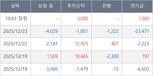 [표] 주요 기관별 순매매량 (단위 주)