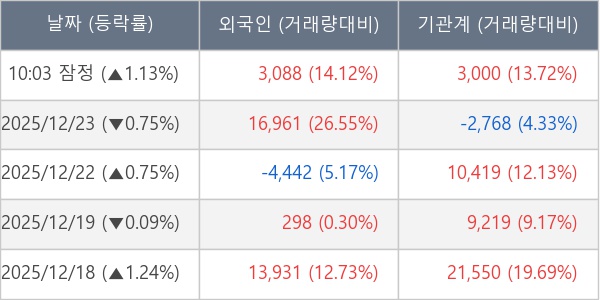 ※ 사모펀드 등 일부 기관의 순매매량은 표시되지 않음