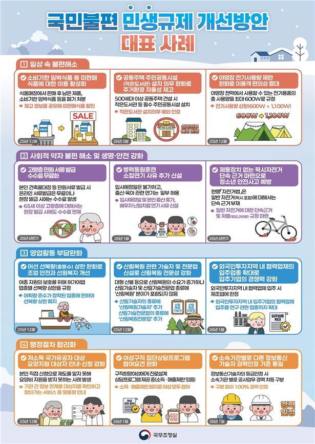 국무조정실은 24일 정부세종청사에서 김민석 국무총리가 주재한 제8차 국가정책조정회의에서 이 같은 내용이 담긴 국민불편 민생규제 개선방안이 논의됐다고 밝혔다.