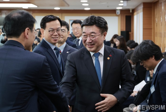 [서울=뉴스핌] 이길동 기자 = 윤호중 행정안전부 장관이 24일 서울 종로구 정부서울청사에서 열린 제8회 중앙지방정책협의회에서 참석자들과 인사를 하고 있다. 2025.12.24 gdlee@newspim.com