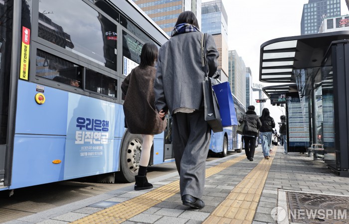 [서울=뉴스핌] 양윤모 기자 = 24일 통상임금이 쟁점인 임금 협상에서 사측과 이견을 좁히지 못한 서울시버스노동조합이 내년 1월 13일 전면 파업에 돌입하기로 결정한 가운데, 서울 종로구 세종대로에서 시민들이 버스를 기다리고 있다. 2025.12.24 yym58@newspim.com