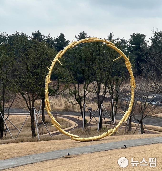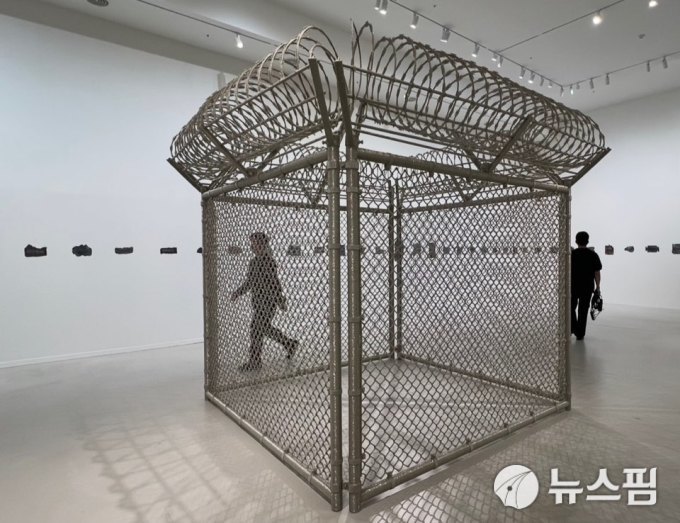 [서울=뉴스핌] 뉴욕 기반의 여성작가 라이자 루가 남아공 줄루족 여성들과 1년간 철조망을 비즈로 일일이 엮고 감싸며 완성한 작품. 구속과 억압의 상징인 철조망을 사랑으로 덮어감으로써 트라우마를 치유하고자 한 설치미술이다. [사진=이영란 미술전문기자] 2025.12.25 art29@newspim.com