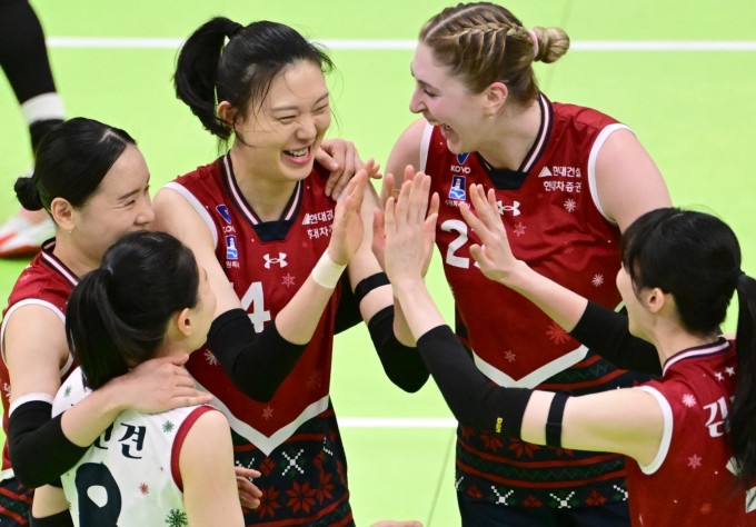 현대건설은 25일 수원체육관에서 열린 진에어 2025-2026 V리그 여자부 홈경기에서 정관장을 세트 스코어 3-2(25-20 24-26 14-25 25-19 15-12)로 눌렀다.
