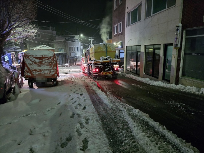 울릉군은 제설차 4대, 소형 제설차 2대, 살수차 3대 등 제설 장비와 제설 인력을 투입하고 4개 구간에 자동 제설 장비인 스노우멜팅 시스템을 가동해 제설 작업을 서두르는 한편 빙판길 제거 등 주민 안전 관리에 총력을 쏟고 있다.