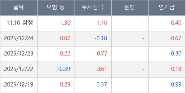 ※ 사모펀드 등 일부 기관의 순매매량은 표시되지 않음